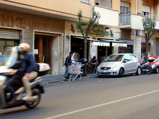 piove e come spesso succede non ho di che coprirmi, ma esco indomito per fare un po di spesa per la cena. Il menù al solito non è previsto io applico la cousine du marchè, decido in base ai prodotti che trovo, sicuramente mai prima di uscire di casa. Quindi faccio mente locale sugli acquisti della mattinata al mercato, casuali in genere. Sicuramente dovrà comprare del pane, un po di formaggio, il parmigiano per il ragazzino, della ricotta magari di capra e volendo fare un tortino di verdure... detersivi per i panni e ci scappa ...mentre percorro i cento metri che distanziano l'ultimo spazio coperto dall'ingresso del supermercato mi viene in mente che “non ho redatto la lista” un fulmine avrebbe fatto meno male. È un guaio di proporzioni gigantesche... dovrò gironzolare tra i comparti tutti nella speranza di accendere qualche neurone della memoria che mi segnali qual'è lo stato ultimo del luogo asciutto. Gironzolando a caso, in genere, finisce che cado in tentazione per qualcosa di perfettamente inutile, aumenta il tempo perso tra gli scaffali e infine riempiro talmente il cestino da essere costretto a pagare col bancomat perchè i soldi che ho di budget non basteranno. Speriamo che almeno ricorderò il codice del bancomat. Percorro gli ultimi dieci metri e arrivo.
